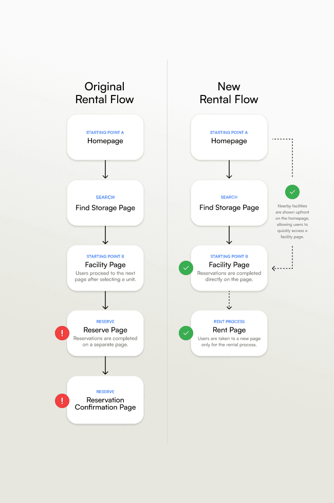 To address user pain points and align with SmartStop’s business goals, I led the design of: