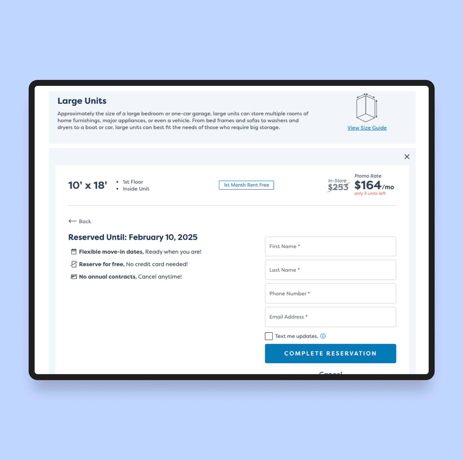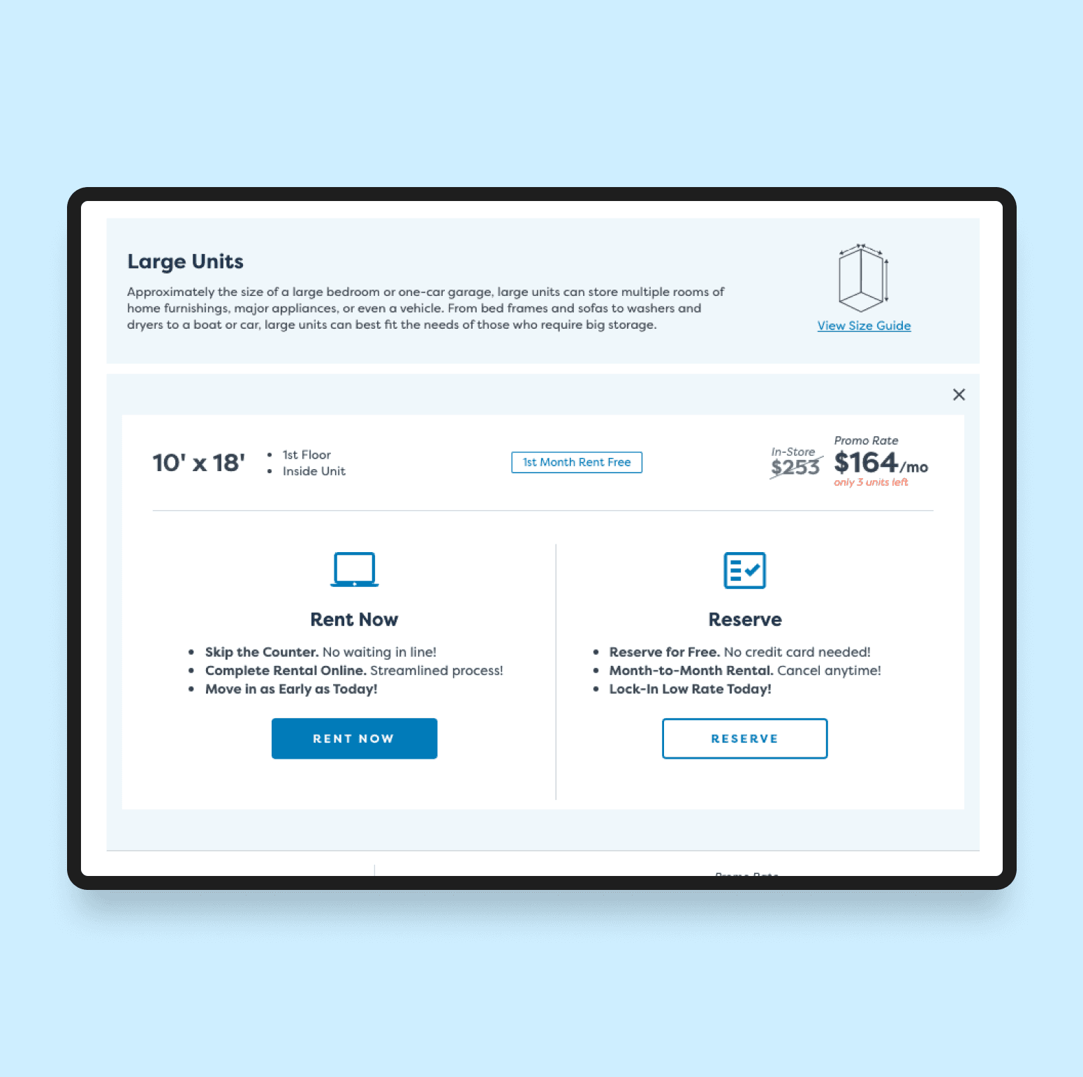 A fully mobile-optimized experience that enabled users to reserve or rent units online.